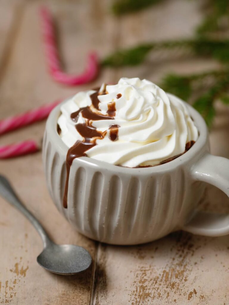 Krämig varm choklad toppad med fluffigt grädde