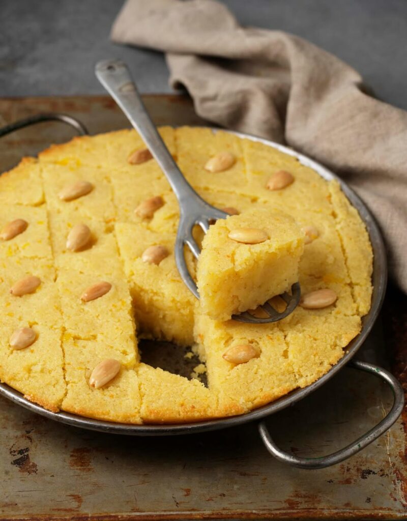Basbousa, även känd som revani, är en saftig mannagrynskaka från Mellanöstern med mandel och apelsin. Denna kaka, populär vid högtider som Ramadan och Eid, är uppskattad av både barn och vuxna. Den har en mjuk och smältande konsistens, och kan anpassas med olika smaker.