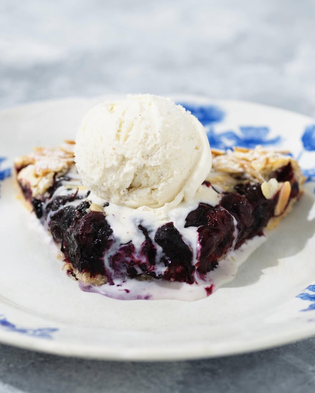 Denna blåbärsgalette med mandel är en rustik och ljuvlig variation på den klassiska franska galetten och är helt perfekt för sommarens blåbärsskörd! Med ett smörigt och frasigt skal, knaprigt mandelspån-täcke som kompletterar blåbärens syrliga sötma får du en dessert som både ser vacker ut och smakar underbart. Receptet är så enkelt, kräver få ingredienser och du kan snabbt bjuda på en bärpaj som imponerar 😍 Servera den gärna med en klick härligt krämig vaniljglass som du enkelt gör hemma utan glassmaskin!