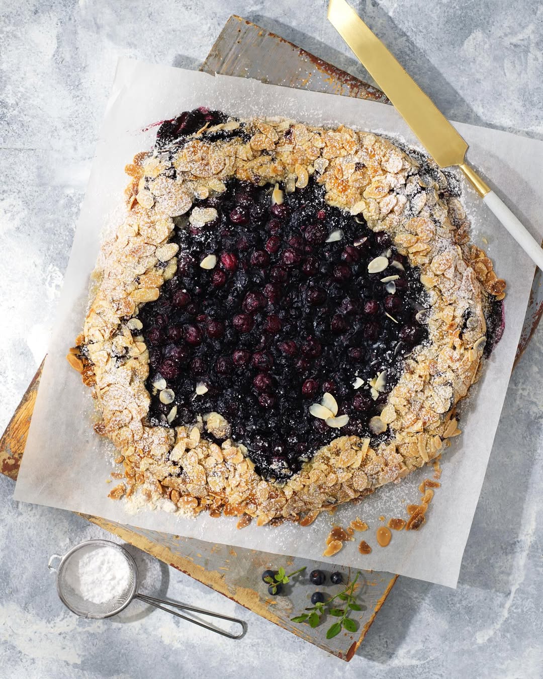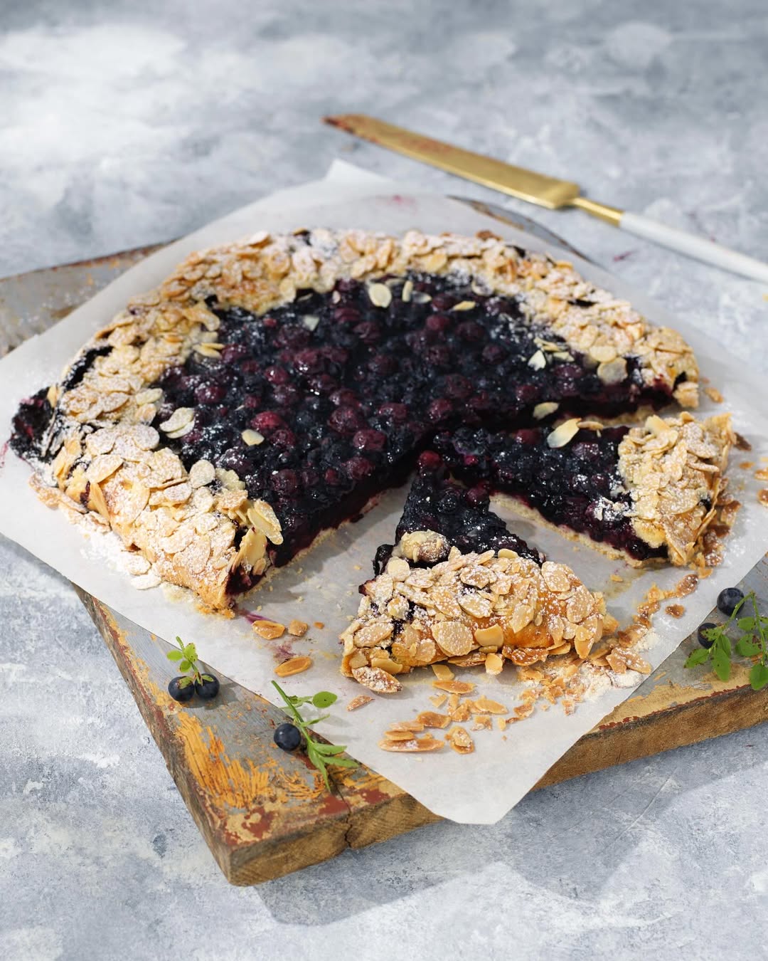 Den här blåbärsgaletten med mandel är en enkel och rustik fransk galette som passar helt underbart efter en härlig middag med nära och kära!