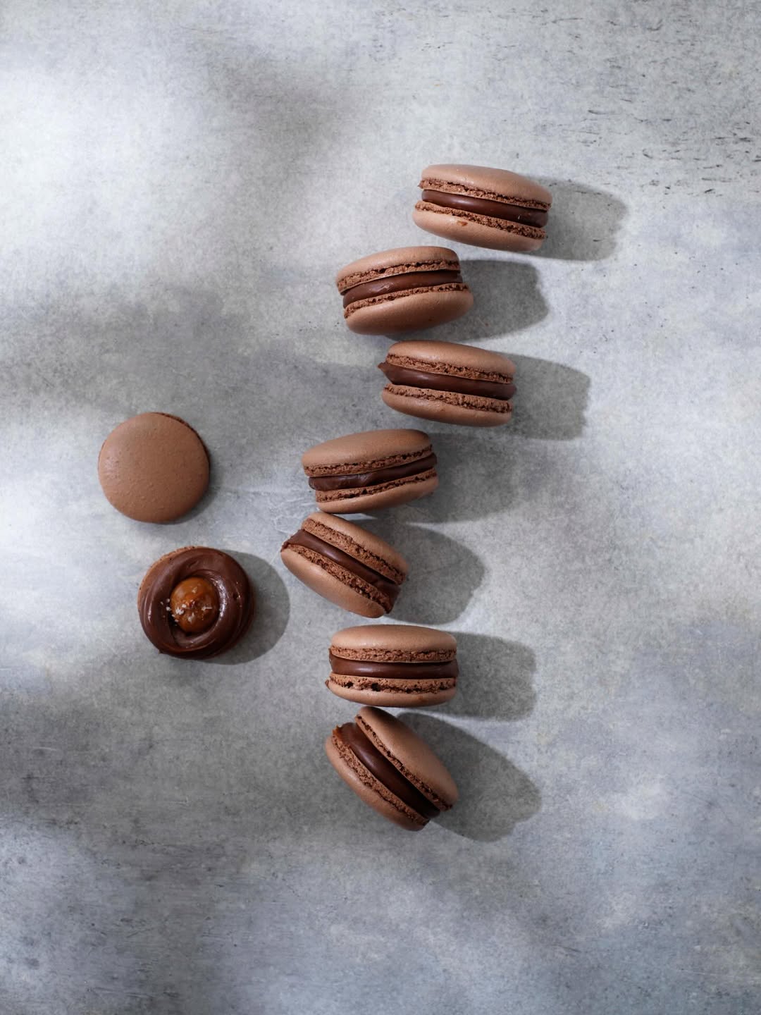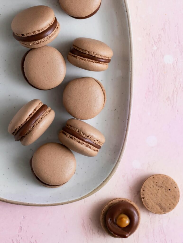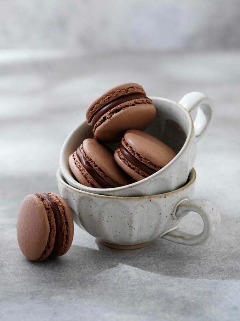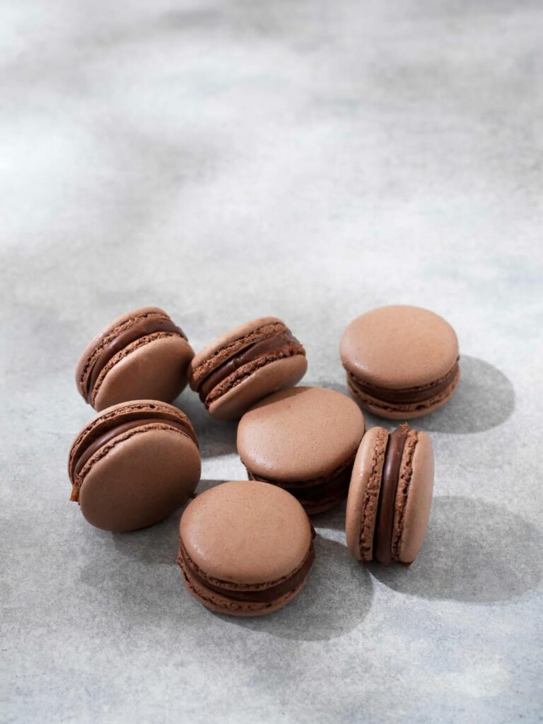 Ljuvliga macarons med smak av choklad och kola.