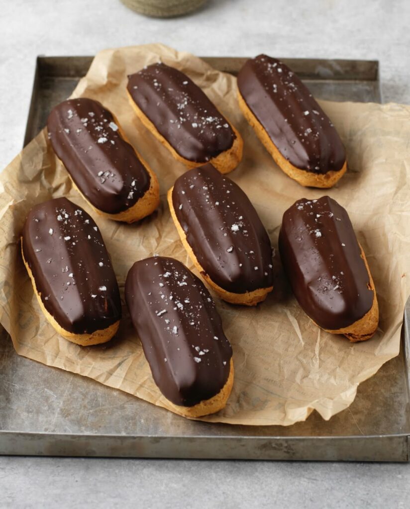 När jag var i Paris åt jag helt magiska éclairer, och jag visste direkt att jag måste hem och baka mina egna. Resultatet blev de här klassiska franska éclairerna med krispig yta, fyllda med len, hemgjord vaniljkräm och doppade i blank mörk choklad 😍 Ett riktigt drömbakverk där flingsaltet på toppen bryter av helt perfekt och gör varje tugga oemotståndlig. Vill du se min vlog från Paris? Klicka här för att se den på min YouTube-kanal!