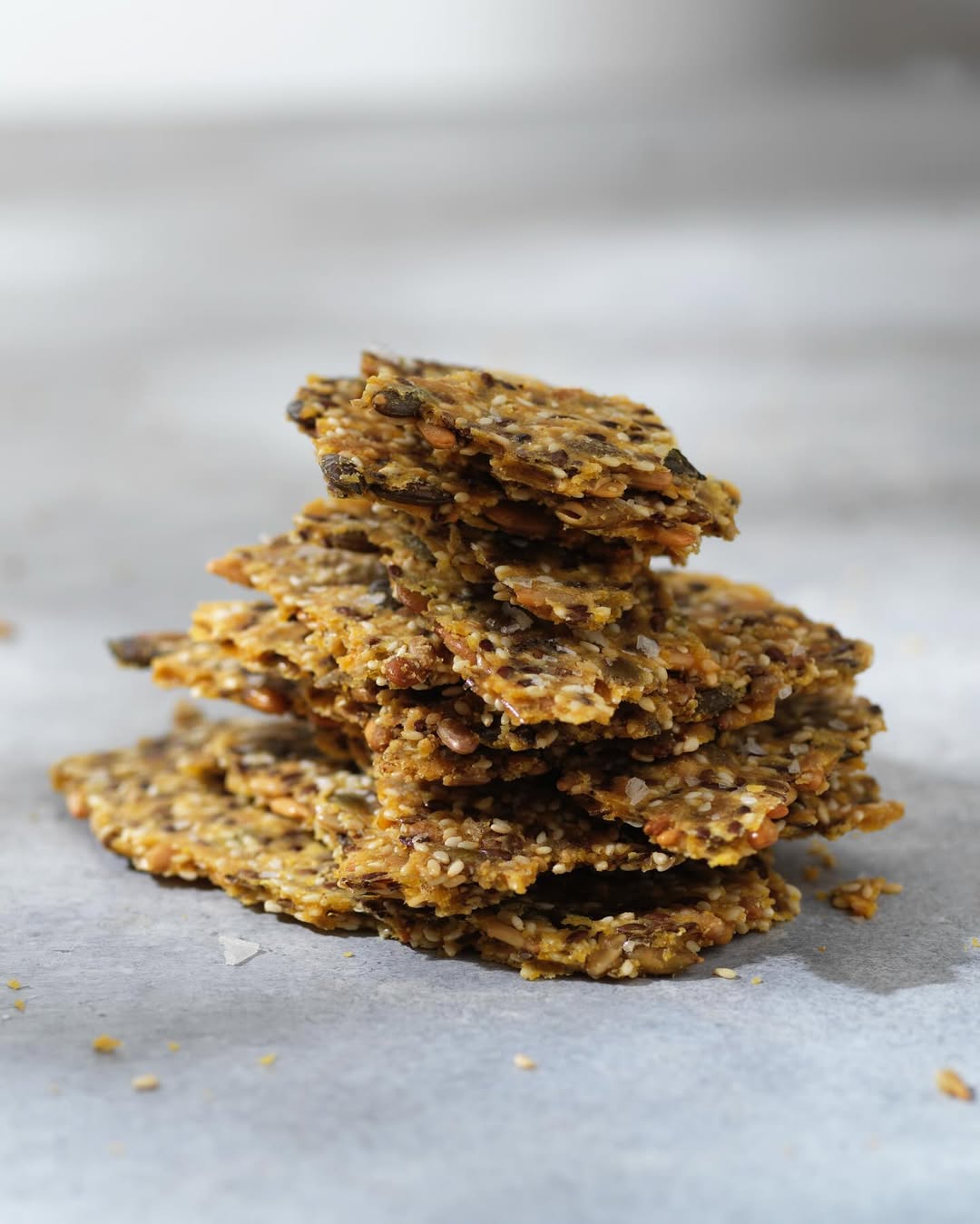 Ett gott och smakrikt knäckebröd med massa härligt tuggmotstånd. Knäcket är superenkelt att göra och funkar även fint som kex tillsammans med goda ostar och annat!