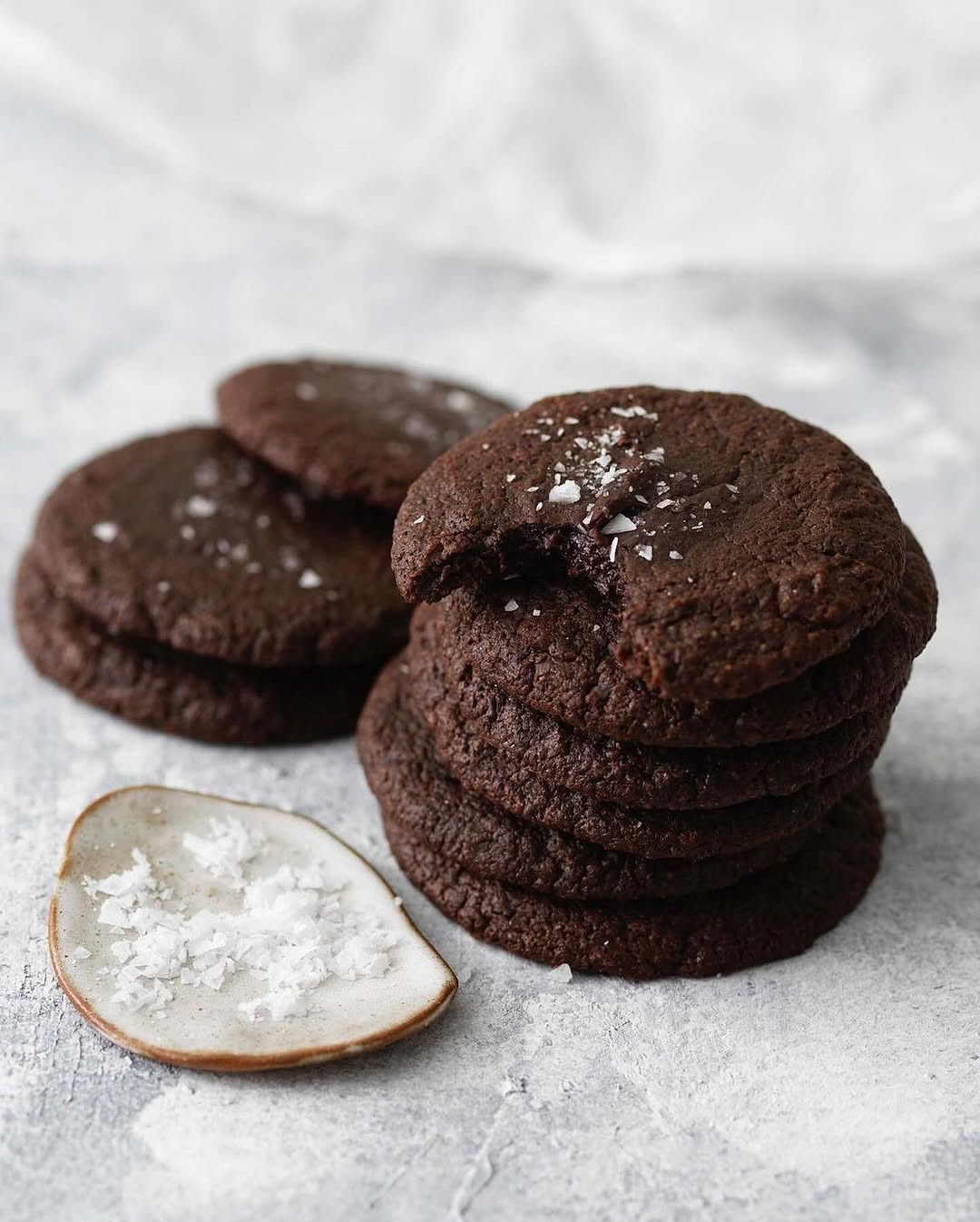 Kladdkakecookies eller kladdkakekakor, alltså kladdkaka i runt kakformat som passar perfekt i handen och dessutom inte behöver stå en massa timmar i kylskåpet för att få rätt konsistens utan kan ätas nästan direkt. Perfekt segmjuka och massor av chokladsmak. Med flingsalt på toppen blir de här kakorna magiska!