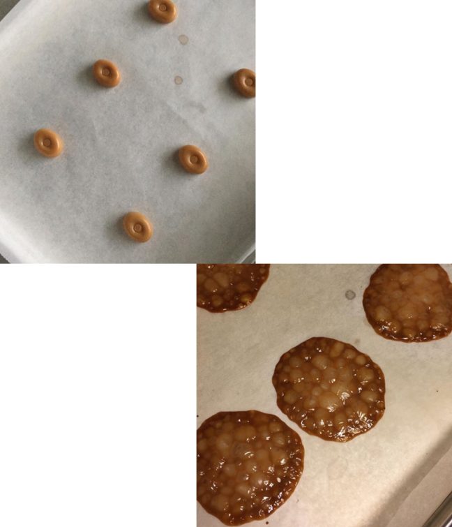 Kolaflarn är superenkla att göra. Det enda du behöver ä någon form av hård karamell (jag använder cream candies från Wherther’s original). Sätt ugnen på 200 grader (över- och undervärme) och täck en plåt med bakplåtspapper. Fördela karamellerna med mycket mellanrum mellan varandra på plåten. Grädda i mitten av ugnen i 6-10 minuter (mina var perfekta vid 6 minuter. De är bubbliga och gyllenbruna när de är redo. Låt svalna helt och håller på plåten. Du kan antingen dekorera med dem som de är runda eller göra som jag gjort på denna paj, bryta dem i bitar.