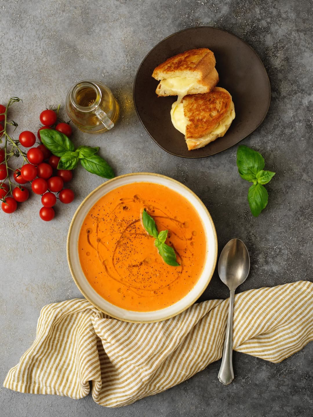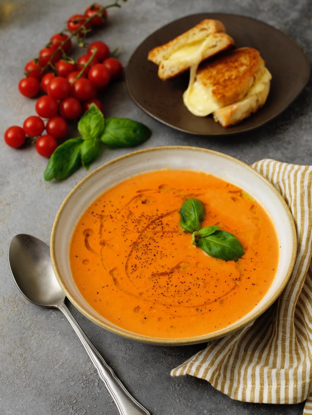 Rostad tomatsoppa med grilled cheese, är precis sån comfort food man längtar till lite extra i detta ruggiga väder! Soppan blir extra mustig genom att man rostar grönsakerna och gifter samman allt med syrad grädde. Men helt ärligt… En riktigt ostig grilled cheese är nästan stjärnan här. Det finns verkligen inget godare tillbehör till en soppa 😍 Receptet är inspirerat av bästa Helan Shabani!