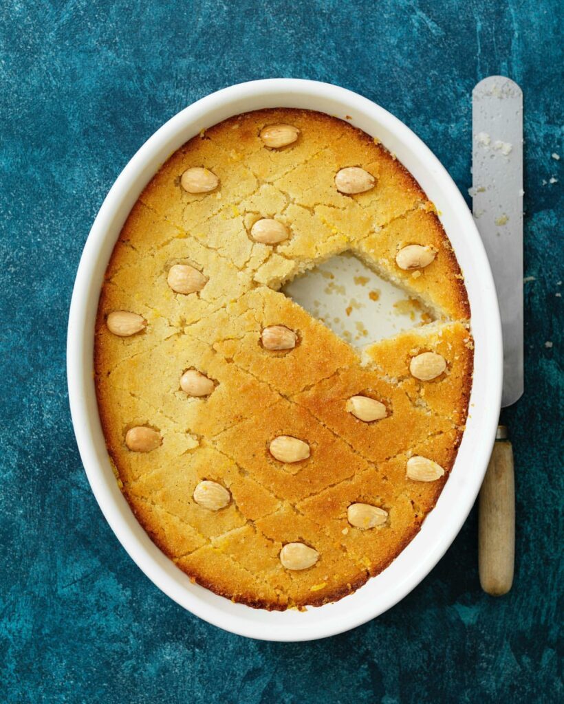 Basbousa, även känd som revani, är en saftig mannagrynskaka från Mellanöstern med mandel och apelsin. Denna kaka, populär vid högtider som Ramadan och Eid, är uppskattad av både barn och vuxna. Den har en mjuk och smältande konsistens, och kan anpassas med olika smaker.