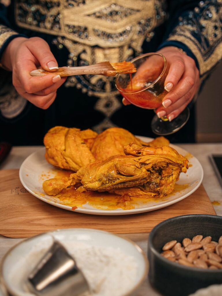 1 hel kyckling (ca 1,2–1,5 kg), delad i bitar